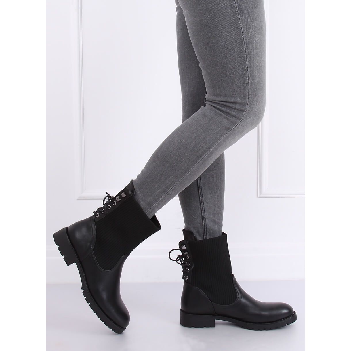Pojedinosti: Čizme s gornjim dijelom čarapa crne 7969-PA Crne crna