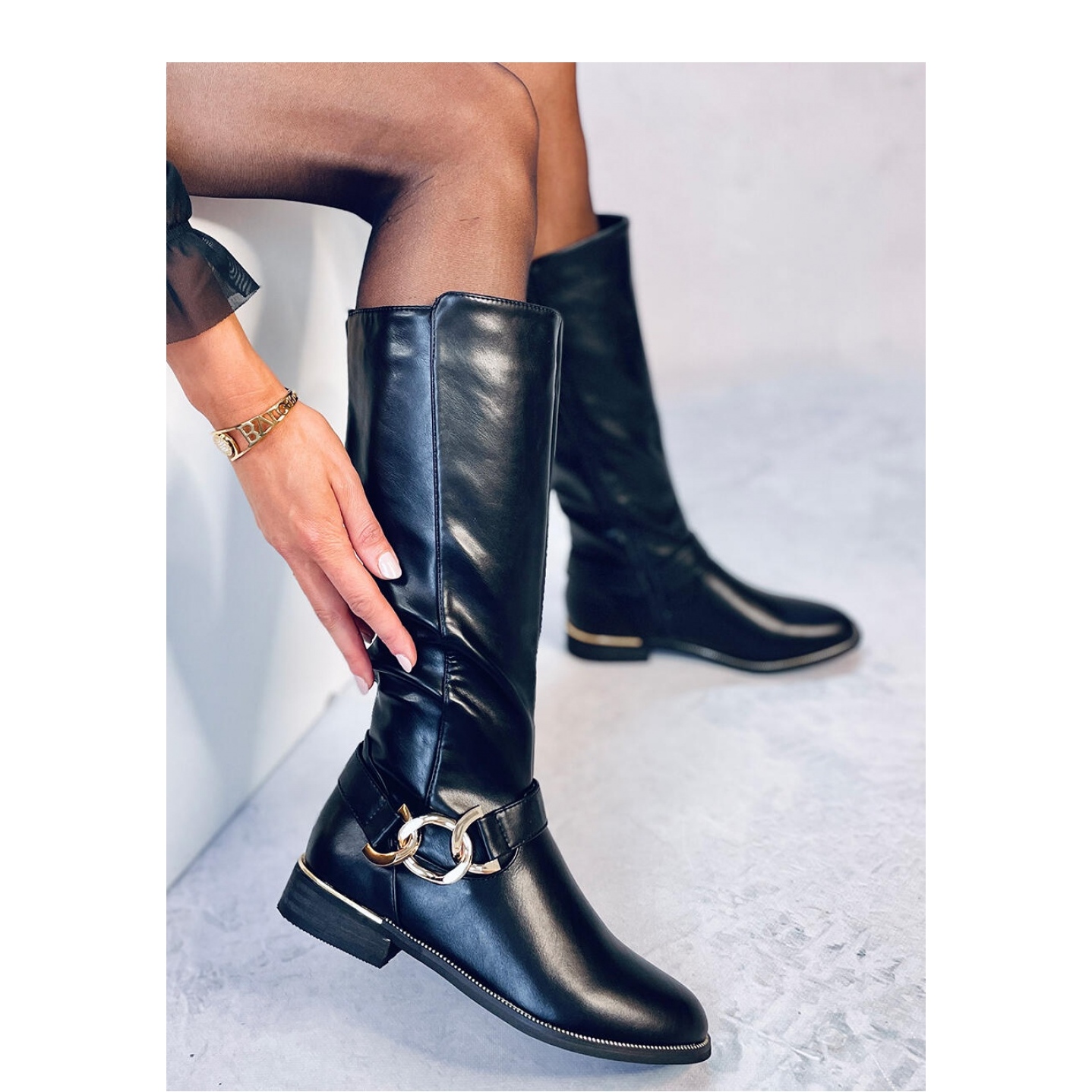 Pojedinosti: Čizme s lancem Devers Black - Inello crna
