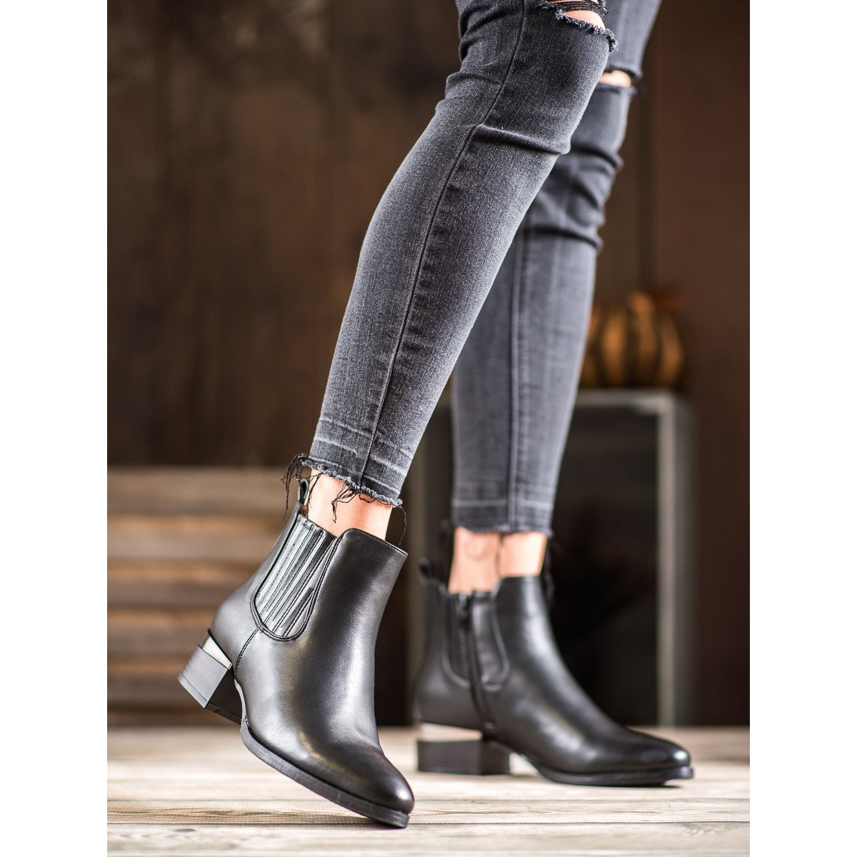 Gležnjače Super Mode s ukrasnom petom savršen su izbor za svaku ženu koja traži elegantnu i udobnu obuću za hladnije dane. Izrađene od visokokvalitetne ekološke kože, savršeno spajaju eleganciju sa svakodnevnom udobnošću. Crni gornji dijelovi sežu iznad gležnja, što ih čini savršenim dodatkom raznim stilovima - od ležernih do elegantnijih.