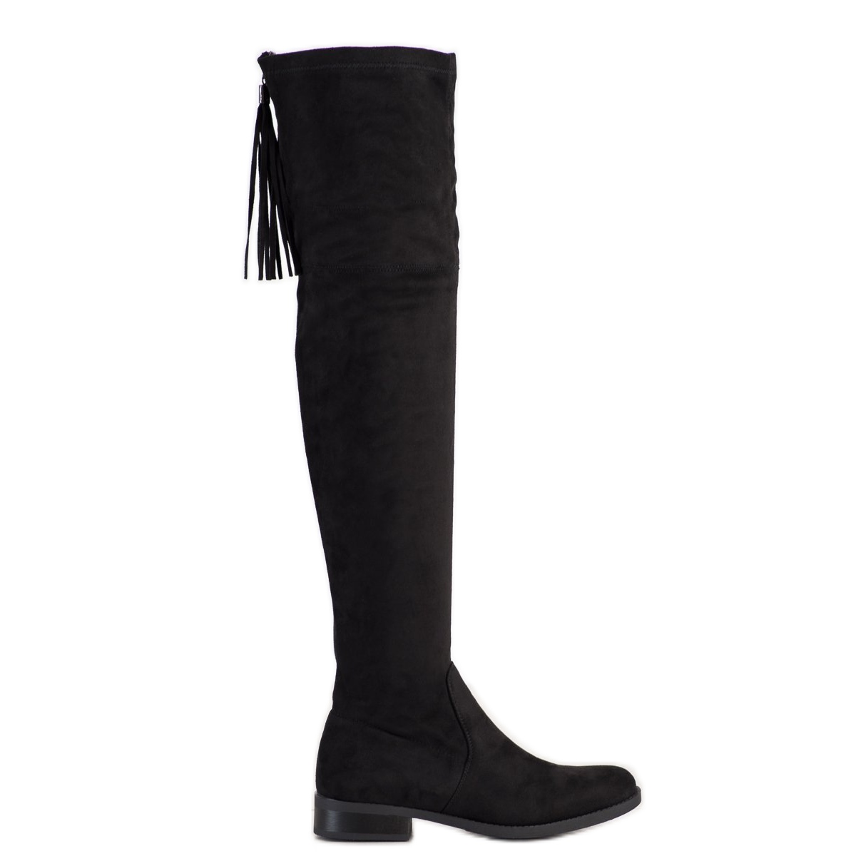 Pojedinosti: Forever Folie Čizme s visokim bedrima s rubovima crna