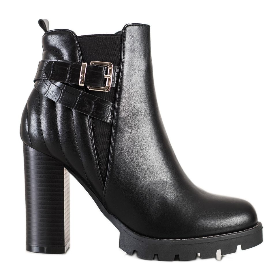 Ove cipele karakteriziraju ugrađena, ojačana peta i visoka peta u obliku bloka od 10,5 cm, što im daje otmjenost i šik. Izrađene od ekološke imitacije kože, ne samo da su moderne, već su i ekološki prihvatljive. Unutrašnjost čizama izrađena je od tekstilnog materijala koji osigurava udobnost i toplinu u hladnijim danima.