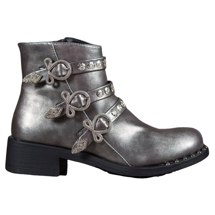 Predstavljamo Forever Folie ženske gležnjače u modernoj nijansi sive koje će zasigurno privući pažnju ljubiteljica elegantnih i originalnih dodataka. Izrađene od visokokvalitetne ekološke kože, ove čizme spajaju eleganciju s daškom rock karaktera, zahvaljujući metalnim ukrasnim elementima poput kamenčića i srebrnih kopči.