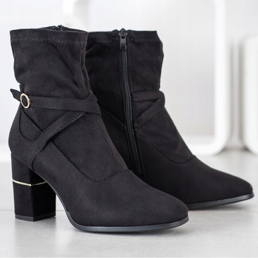 Bez zagrijavanja unutrašnjosti, obložene tekstilnim materijalom, savršen su izbor za ranu jesen ili vedre zimske dane. Gornja širina od 26 cm osigurava udobnost nošenja, a izgrađena, ukrućena peta daje stabilnost. Bez uzorka, u klasičnoj crnoj boji, ove čizme lako se kombiniraju uz razne stilove.