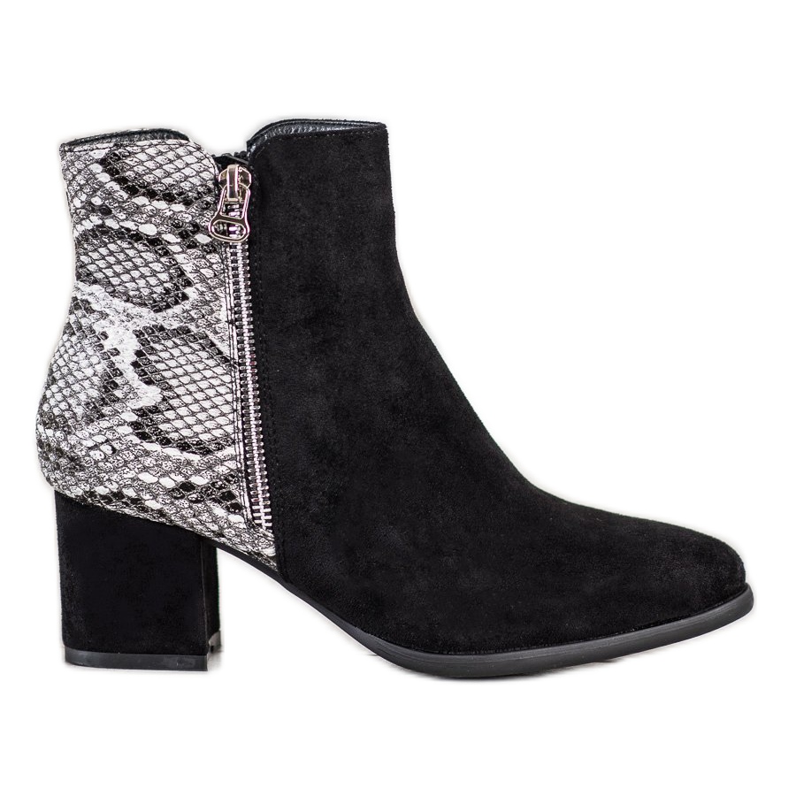 Otkrijte jedinstven stil i udobnost uz gležnjače sa zmijskim printom marke Filippo! Ove elegantne cipele, dostupne u modernim nijansama crne i sive, savršen su izbor za nadolazeću sezonu jesen/zima. Izrađene od najkvalitetnijih materijala, gornjište im je kombinacija imitacije kože i brušene kože, što ih čini vizualno atraktivnim i funkcionalnim.