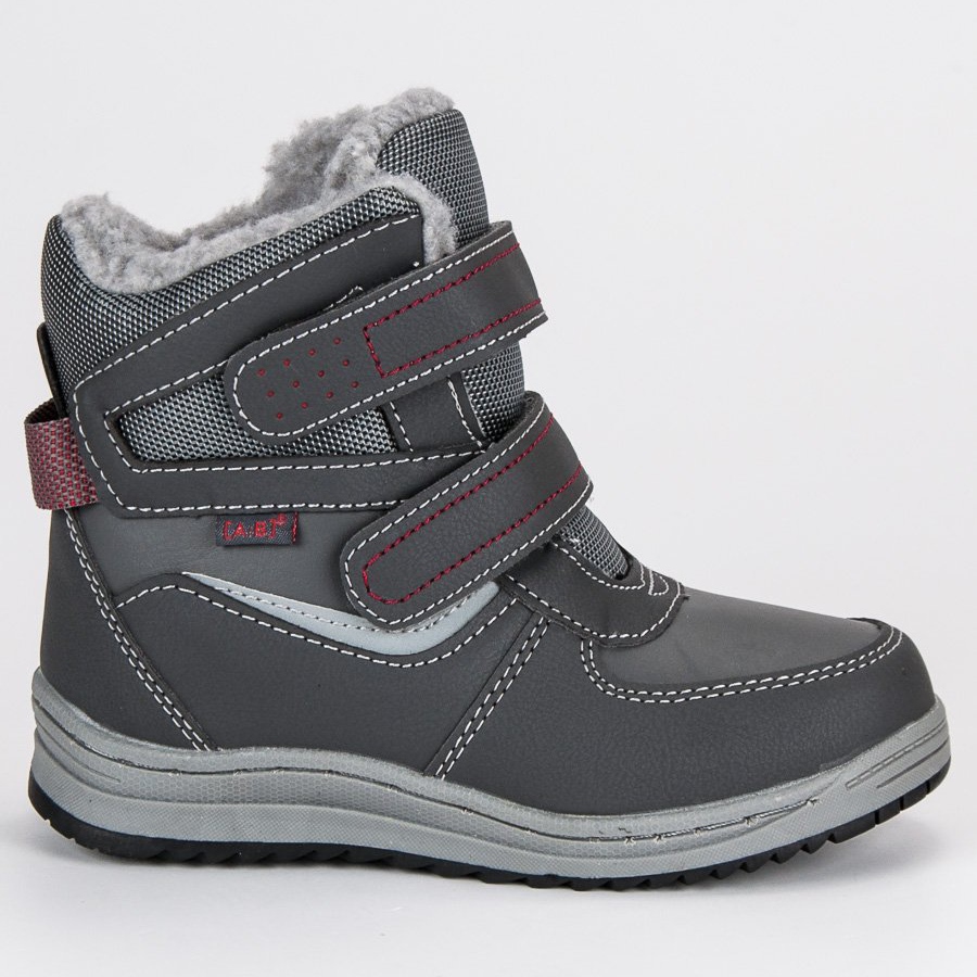 Arrigo Bello - Čizme za snijeg u univerzalnim sivim bojama, namijenjene aktivnim predškolcima. Čvrsti, profilirani gumeni potplat omogućuje dobro prianjanje na skliskim površinama, a ukrućena peta stabilizira stopalo tijekom igre na otvorenom. Obuća od ekološke kože, izolirana mekom ovčjom kožom iznutra - savršena za hladnije dane.