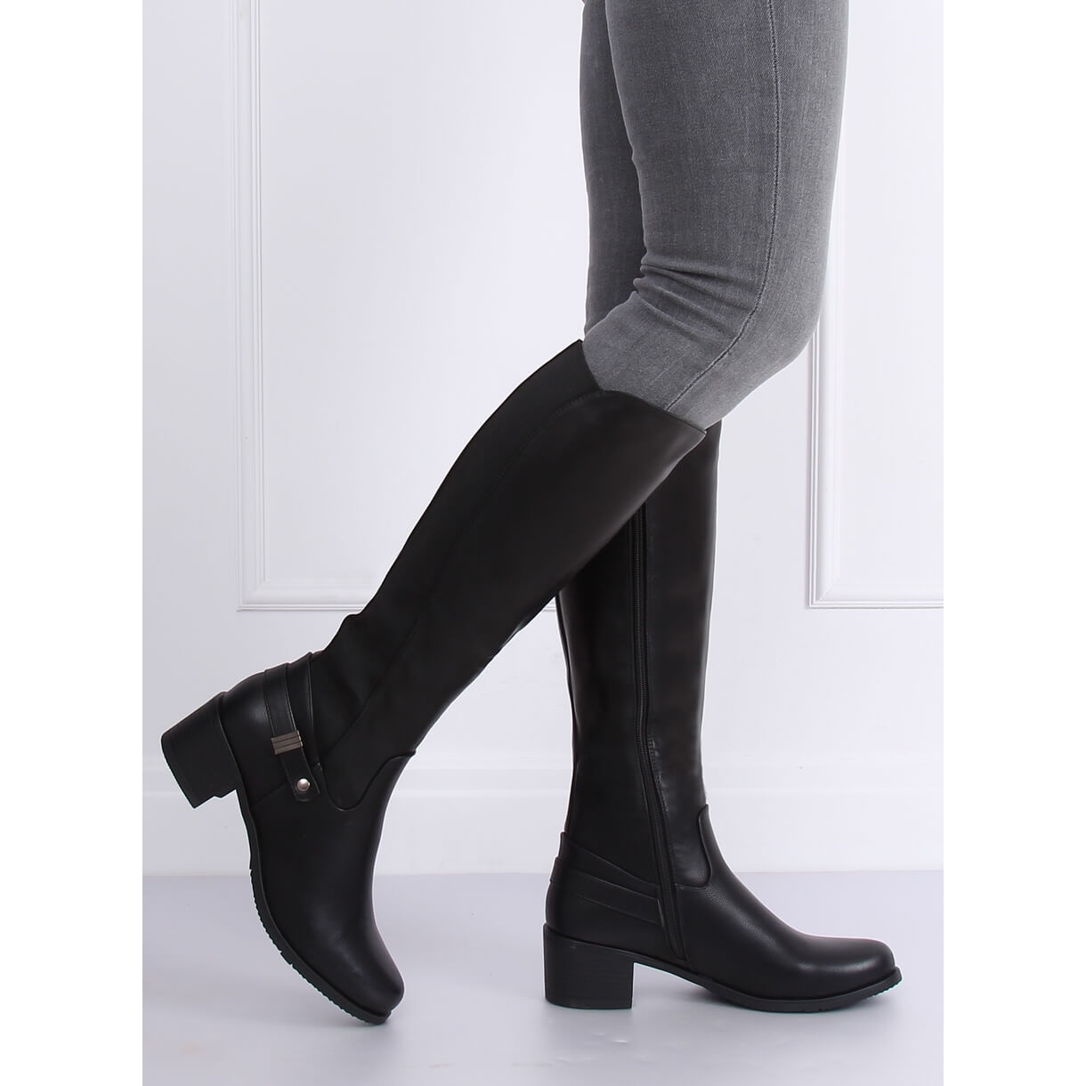 Elegantne, crne ženske čizme na niskoj, stabilnoj peti s visinom od 5,5 cm. Klasični rez s okruglim nosom odlično će funkcionirati svaki dan i za više prigušenih stilova. Elastični dio gornjeg dijela jamči bolje uklapanje teleta, a praktično pričvršćivanje patentnih zatvarača olakšava stavljanje i uklanjanje cipela.