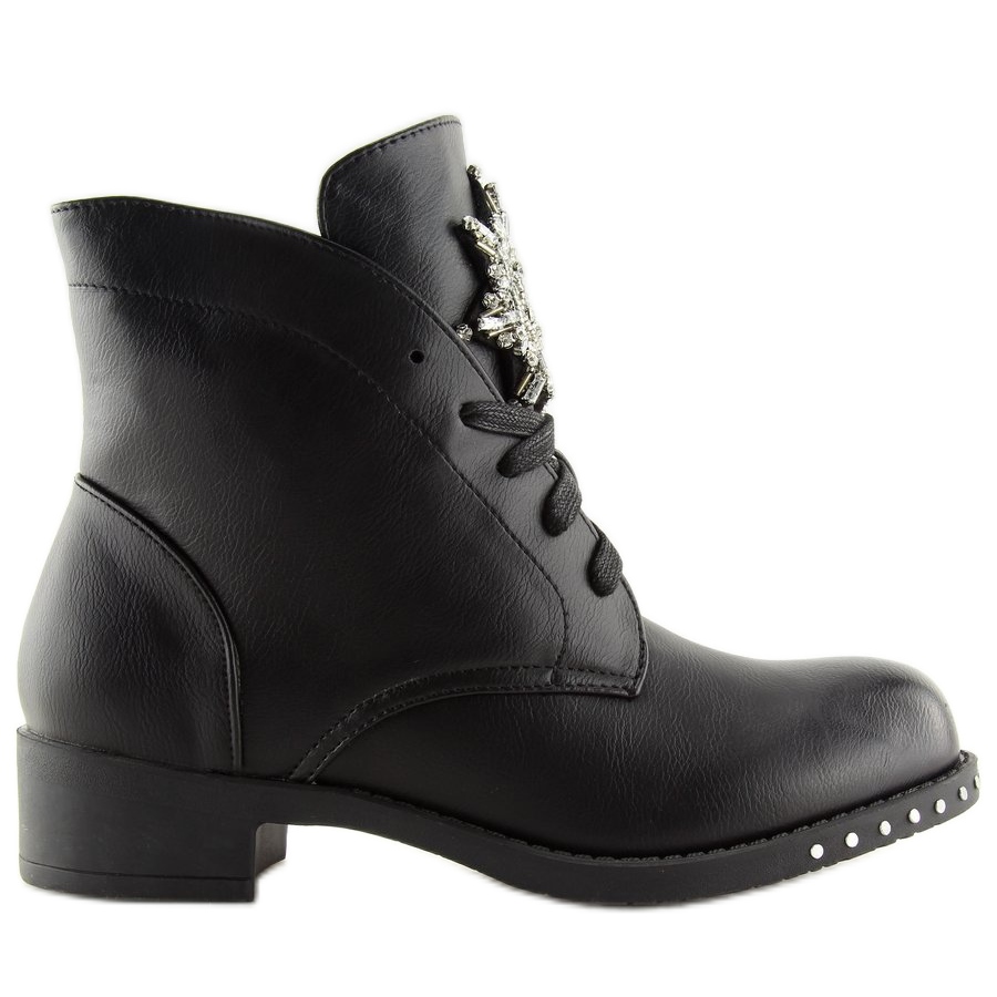 Obogatite svoj ormar unikatnim ženskim gležnjačama na vezanje - radnicama u elegantnoj crnoj boji. Model 100-902BO-1 Black spoj je stila i udobnosti koji će zasigurno privući pozornost. Karakteristična podstava s ukrasnim zakovicama i upečatljiv jezik optočen sjajnim kamenčićima izdvajaju ove radnike iz mase.