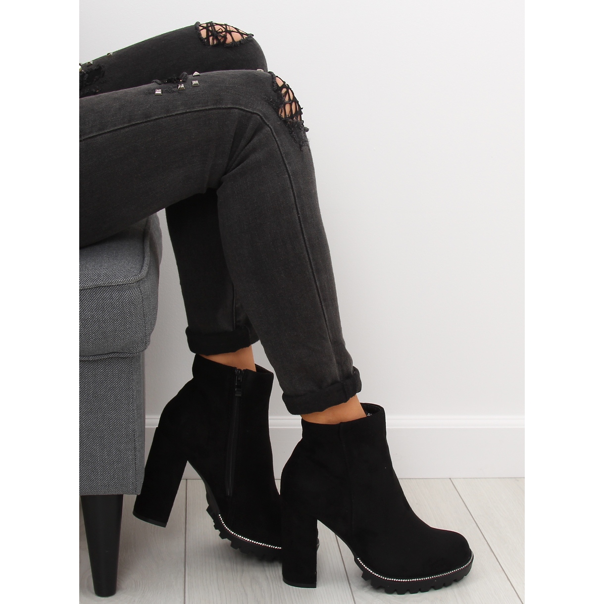 Ženske čizme 58-581 Black II-Gat-stil i senzualnost s laganim nedostatkom. Izrađene od ekološke antilop u klasičnoj crnoj boji, kombiniraju eleganciju s izrazitim naglaskom: trapana platforma (2 cm) ukrašena cirkonima dodaje sjaj, a jednostavna peta od 10 cm visokog klipa optički produžava noge. Bademovi nožni prst naglašava žensku liniju stopala, a praktično pričvršćivanje zatvarača sa strane olakšava stavljanje. Toplije u obliku obloge pjene pruža dodatnu udobnost u hladnijim danima.