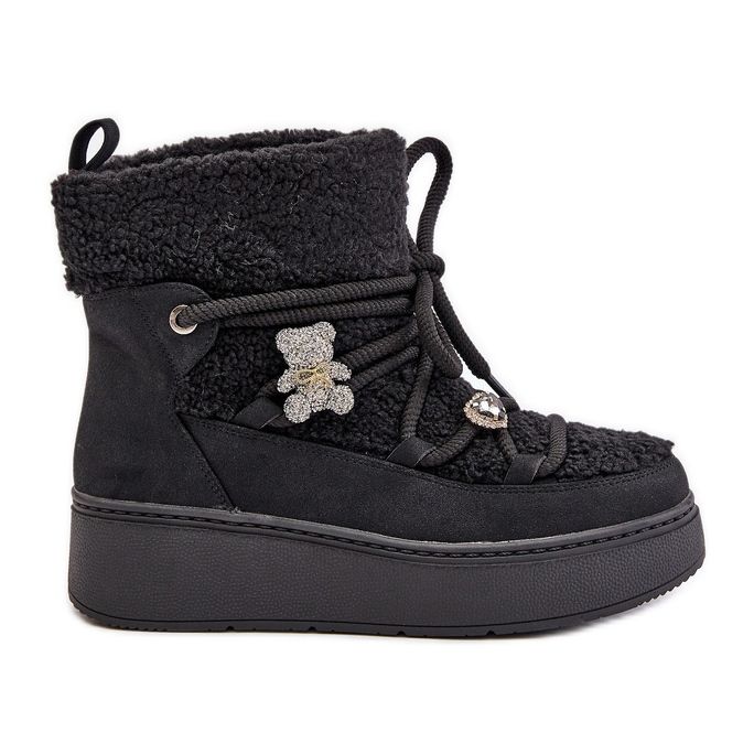 Crne Almatiza ženske čizme za snijeg od ovčje kože s iglama i krznom crna