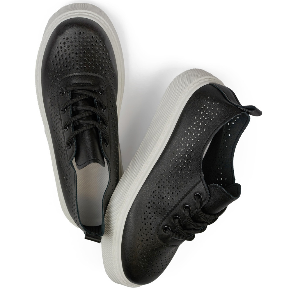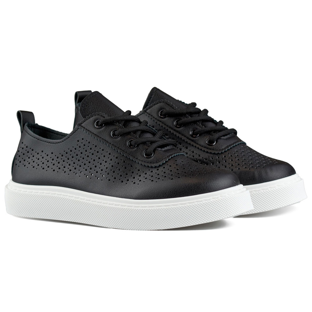 Tenisice su izrađene od visokokvalitetne ekološke kože, što osigurava trajnost i jednostavnost njege. Dizajn otvorenih proizvoda ne samo da upada u oči, već također omogućuje da stopala diše, što je posebno korisno za toplije dane. Zahvaljujući okruglom nožnom prstu i vezanju, savršeno se prilagođavaju stopalu, osiguravajući udobnost duže vrijeme.
