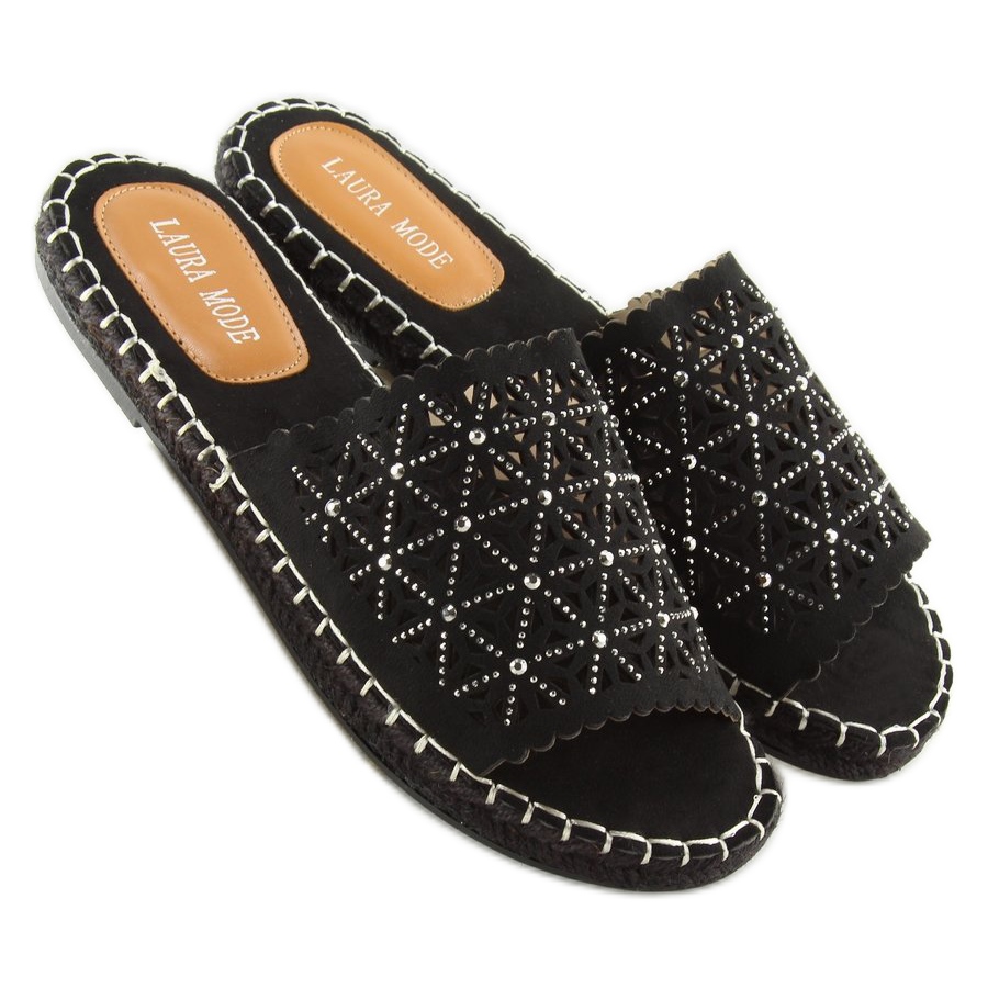 Pojedinosti: Crne ažurne papuče J101 Crna