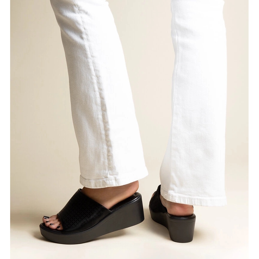 Pojedinosti: Crne ažurne papuče na klin od Garvin eko kože crna