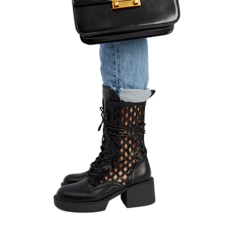 Pojedinosti: Crne ažurne Visalia čizme na visoku petu crna
