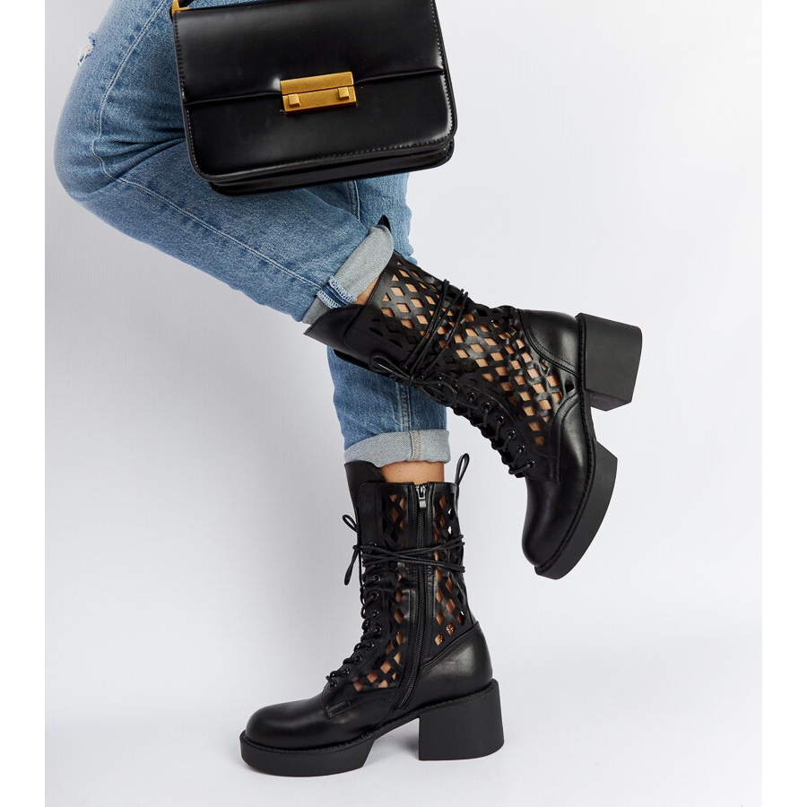 Crne ažurne Visalia čizme na visoku petu crna