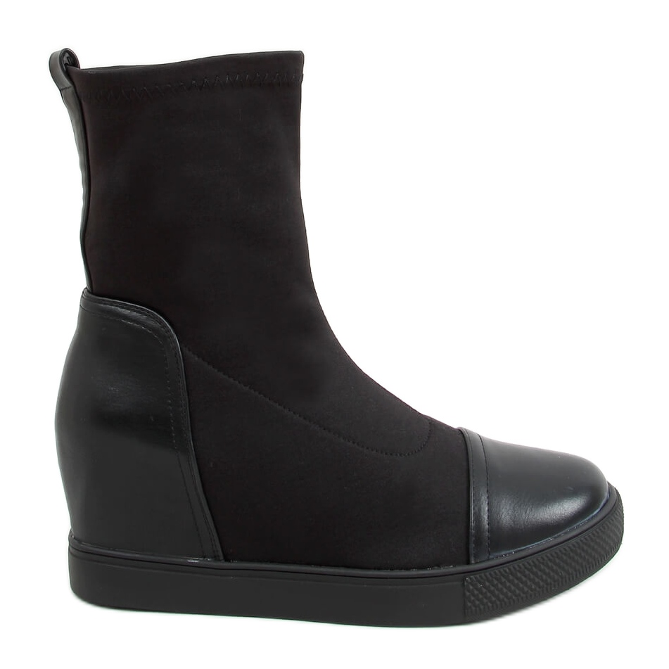 Pozivamo vas da otkrijete jedinstvene crne čizme na klin HQ887 Black, koje će zasigurno postati nezamjenjiv element vašeg ormara! Ove elegantne ženske gležnjače sa skrivenom klinom visine 7 cm spajaju moderan dizajn i udobnost nošenja, a originalna kombinacija sokne i eko kože daje im jedinstven karakter.