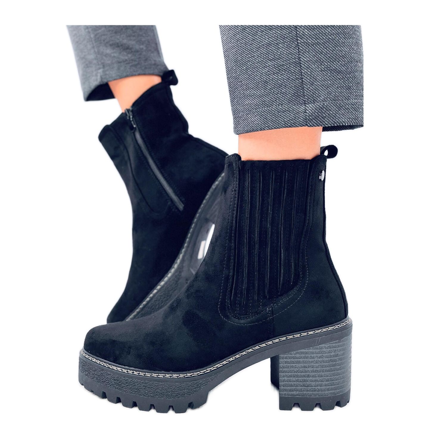 Njihova moderna, široka peta s visinom od 7 cm savršeno naglašava figuru, a istovremeno ih čini idealnim izborom za duge dane provedene na nogama. Čizme su opremljene fleksibilnim umetcima i praktičnim patentnim zatvaračem, što olakšava stavljanje i skidanje. Pored toga, visina platforme od 2,5 cm čini cjelinu još ugodnijim.