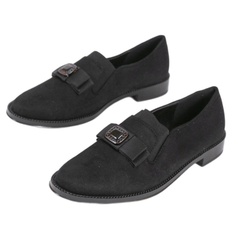 Crne natikače s trakom 236-1 savršen su izbor za žene koje žele spojiti eleganciju s udobnošću. Ove jedinstvene cipele privlače pozornost svojim originalnim ukrasom mašne, što ih čini savršenom nadopunom svakodnevnog i jedinstvenog stila.