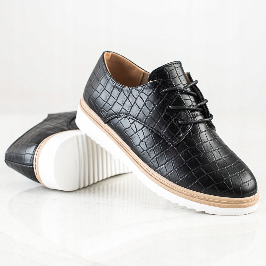 Ove crne cipele također imaju jedinstven životinjski uzorak koji ih čini prepoznatljivima. Zahvaljujući zaobljenom prstu, noge se u njima osjećaju ugodno, a kopčanje na vezice savršeno pristaje svakom stopalu. Ženske cipele SHELOVET savršen su izbor kako za svakodnevne izlaske tako i za elegantnije prigode.