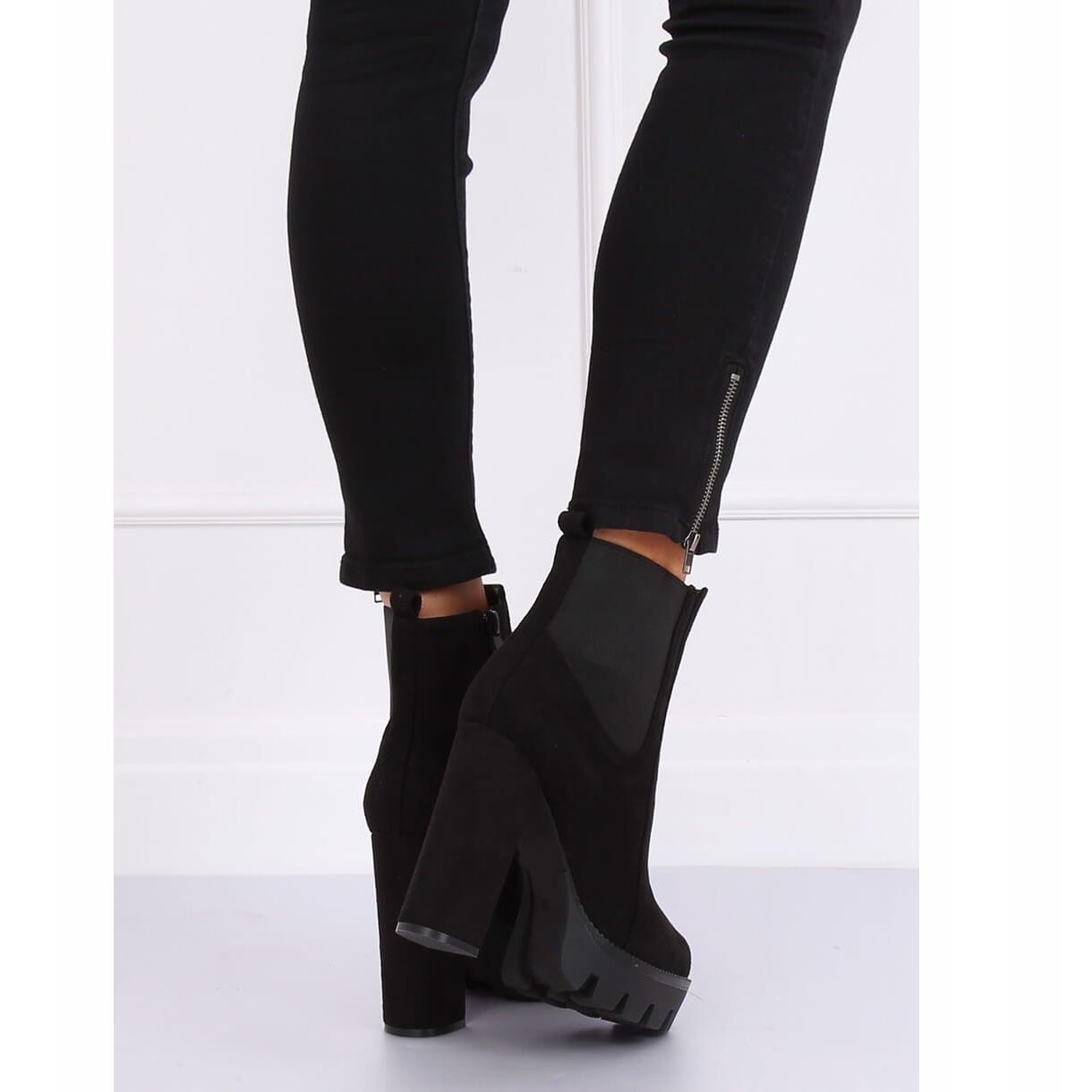 Predstavljamo BM282 Black Chelsea boots - elegantne ženske gležnjače koje će savršeno upotpuniti Vaš ormar. Visina pete od 11,5 cm i platforma visine 3 cm osiguravaju ne samo moderan izgled, već i stabilnost i udobnost nošenja. Klasičan kroj s elastičnim umetkom čini da Chelsea čizme savršeno pristaju uz nogu, a patentni zatvarač sa strane olakšava obuvanje i izuvanje.