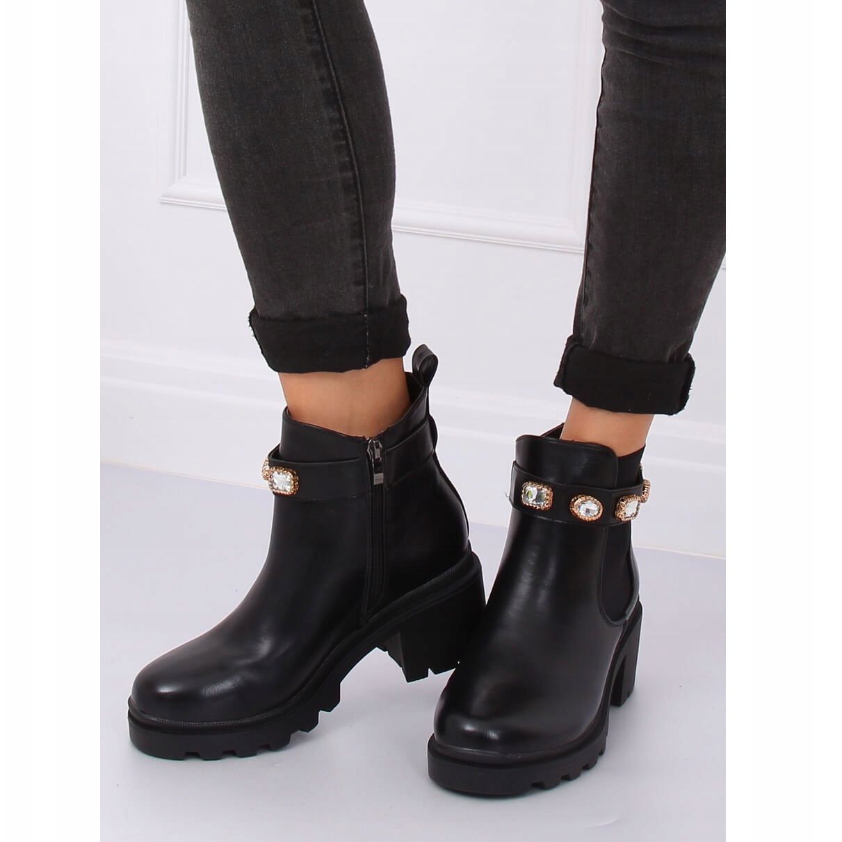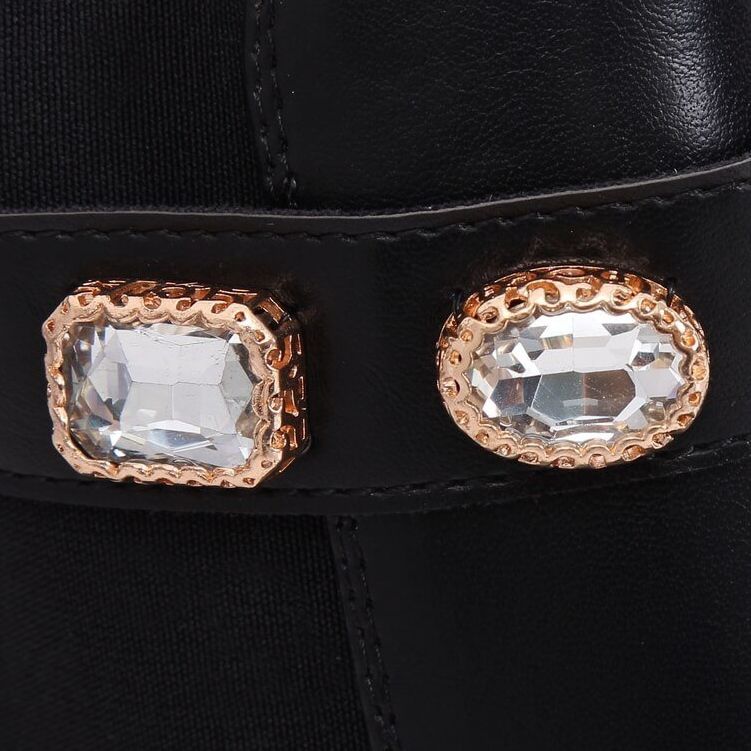 Ovaj model ističu impresivni kamenčići u zlatnom okviru koji mu daju jedinstveni karakter i čine da svaki styling zablista. Elastični umetak sa strane i patentni zatvarač praktična su rješenja koja olakšavaju obuvanje, a istovremeno osiguravaju savršeno pristajanje.