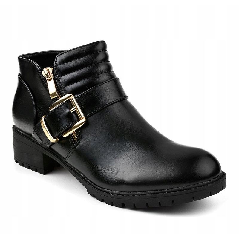 Čizme oduševljavaju širokim petama u obliku bloka od četiri centimetra, koje osiguravaju stabilnost i udobnost pri nošenju. Zaobljeni prsti dodaju suptilnost, a ukrasne trake s kopčama i zlatni patentni zatvarači dodaju dašak modernosti. Zahvaljujući patentnom zatvaraču, obuvanje i izuvanje cipela postaje brzo i jednostavno.