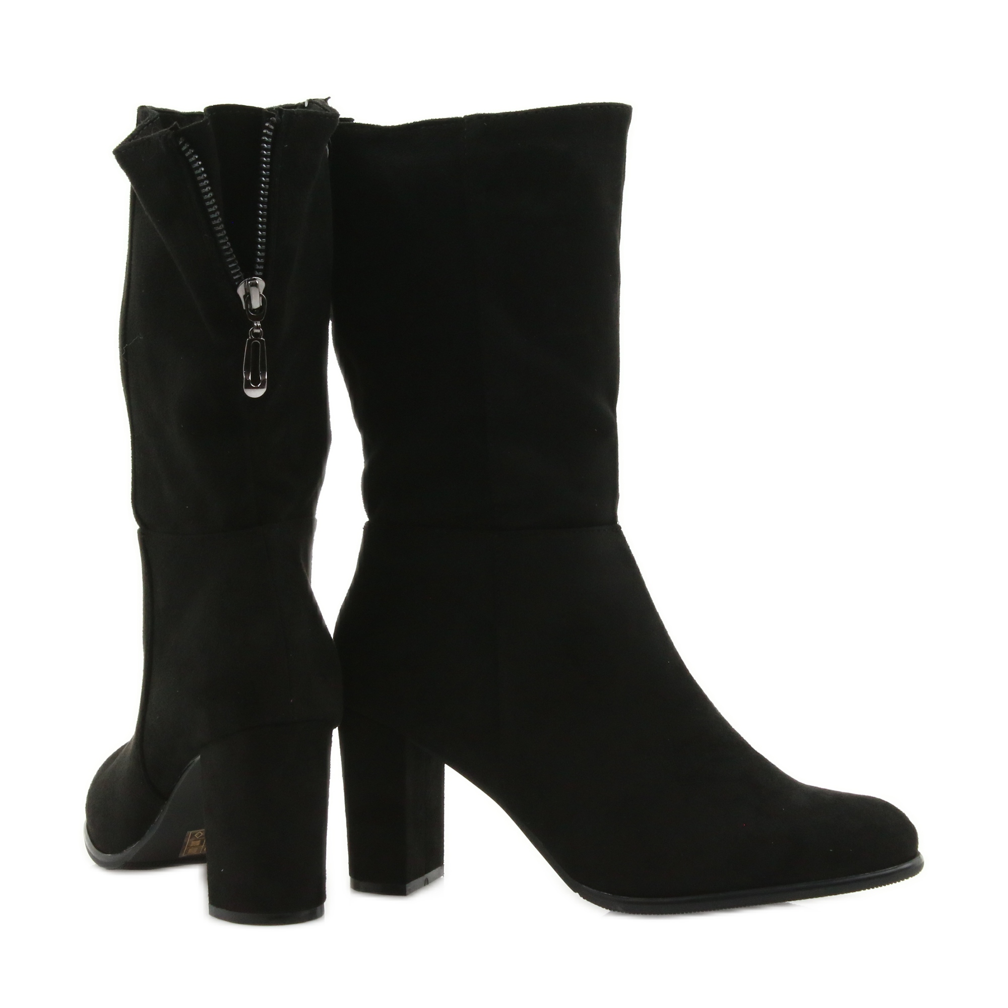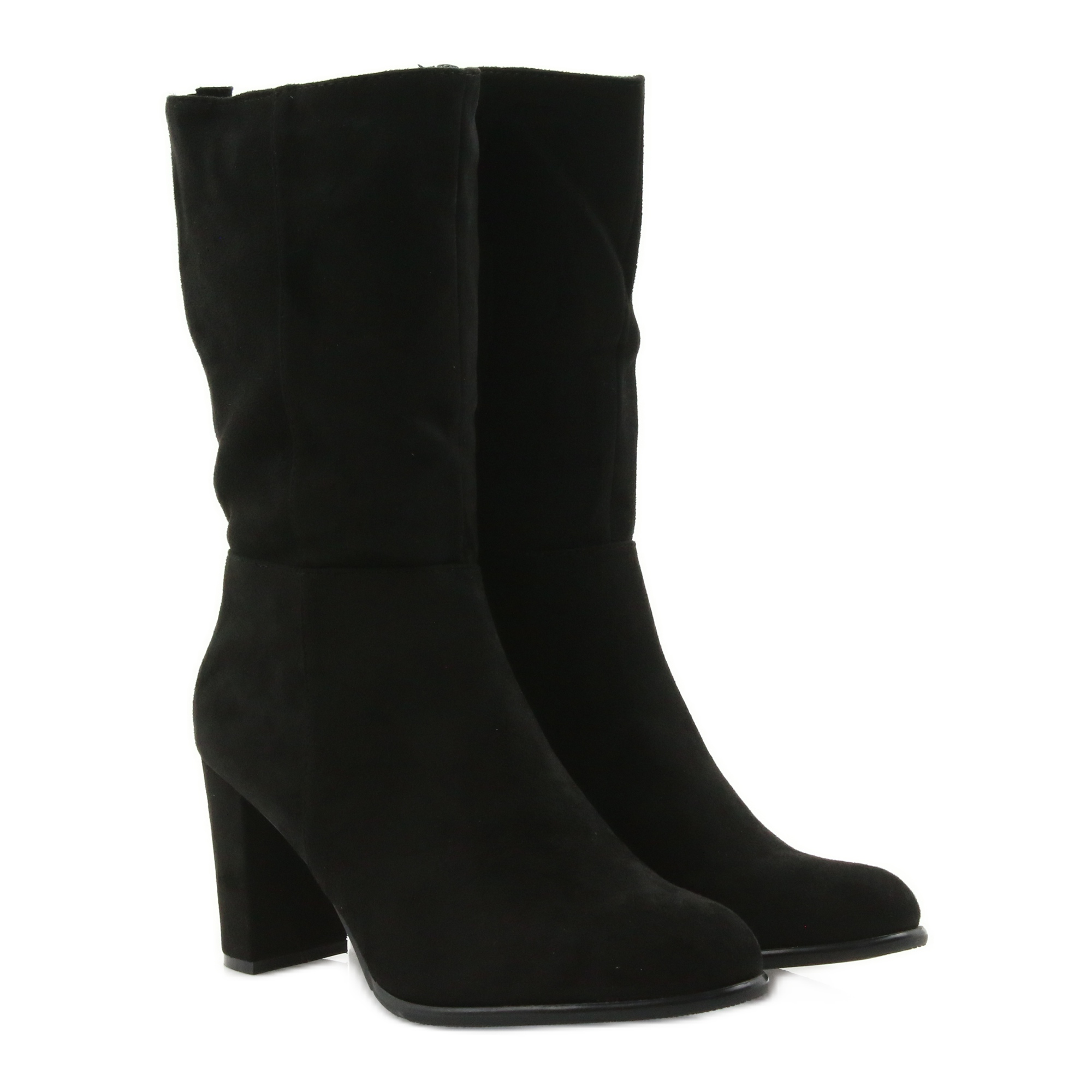 Zahvaljujući duljem gornjištu, visokom 24 cm, i suptilnoj peti u obliku bloka (7,5 cm), ove čizme savršeno oblikuju figuru i optički izdužuju noge. Patentni zatvarač koji se nalazi u gornjem dijelu gornjeg dijela omogućava jednostavno obuvanje i izuvanje, a dodatno omogućuje podešavanje širine, što ih čini još univerzalnijim izborom.