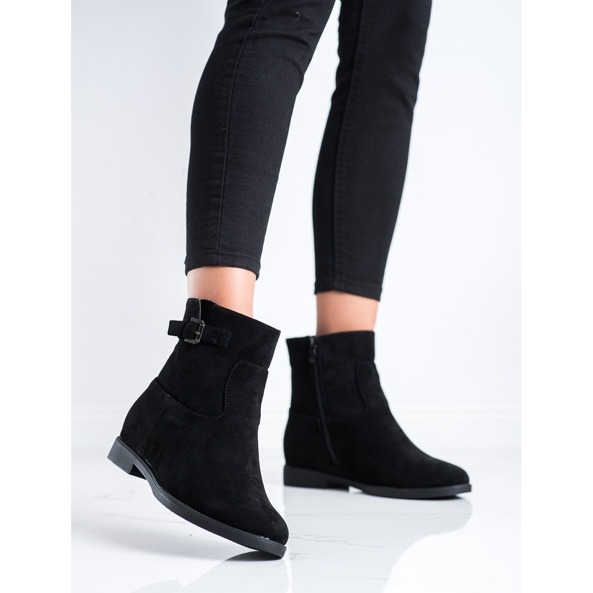 Skriveni klin visine 5 cm dodaje nekoliko centimetara visine dok istovremeno osigurava stabilnost i udobnost hodanja. Bočni patentni zatvarač omogućuje brzo i jednostavno obuvanje i izuvanje cipela. Dodatno, ukrasna kopča privlači pažnju i daje čizmama jedinstven karakter.