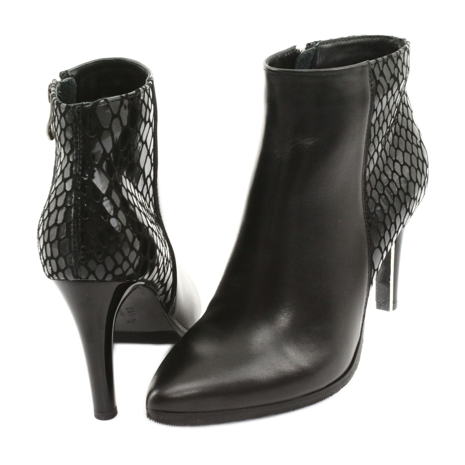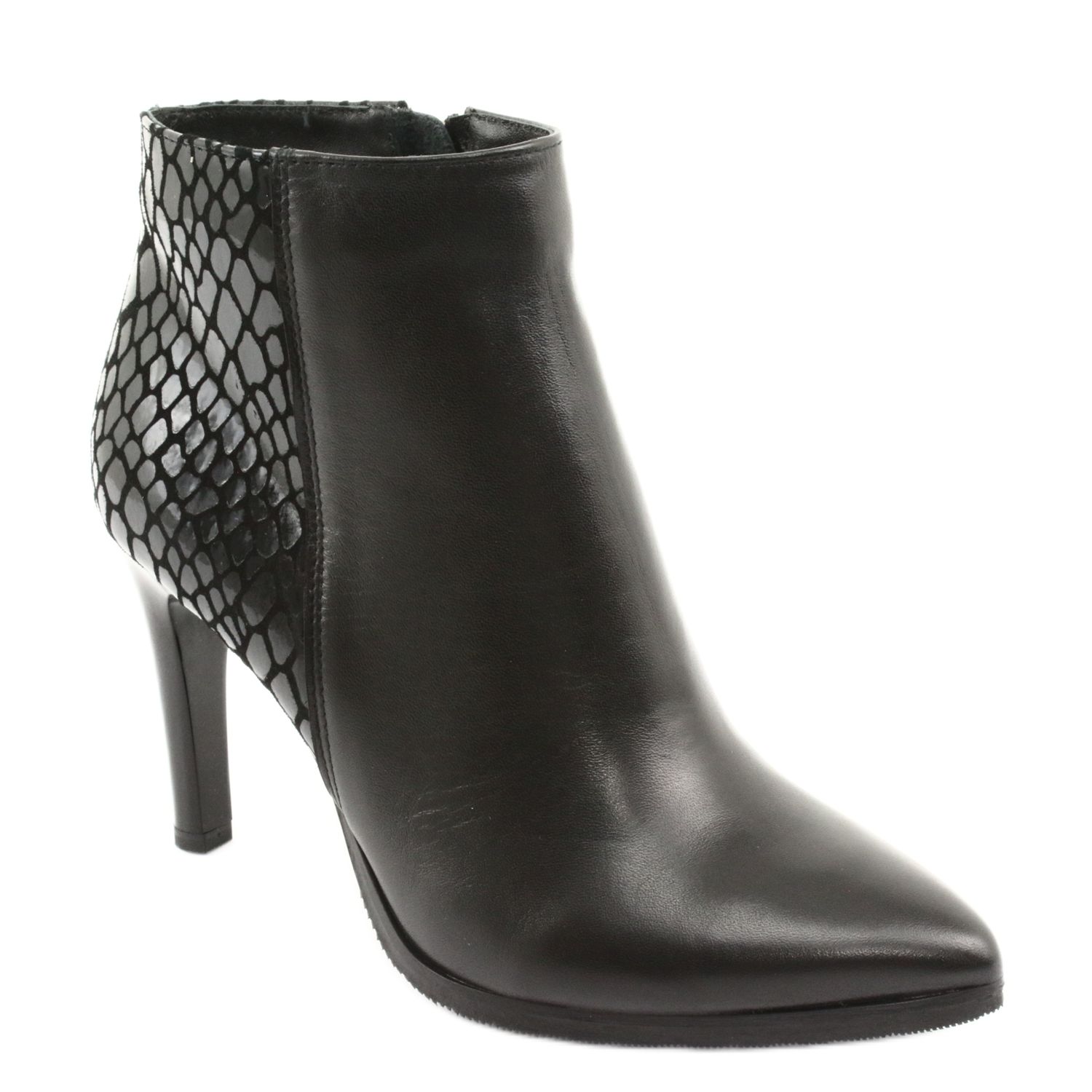 Espinto crne gležnjače na visoku petu savršen su izbor za žene koje žele spojiti eleganciju s udobnošću. Model 118 izrađen je od visokokvalitetne prirodne zrnaste kože, što cipele čini ne samo elegantnim, već i izdržljivim. Crni, lakirani finiš daje im jedinstveni sjaj, a njihova univerzalna boja savršeno ih pristaje uz razne stilove - kako za svaki dan tako i za posebne prigode.