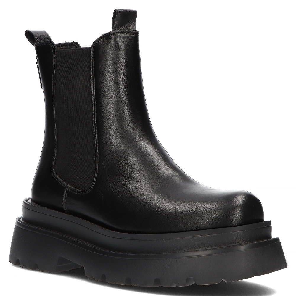 Čizme su izrađene od visokokvalitetne ekološke kože što jamči njihovu izdržljivost i lakoću održavanja. Unutrašnjost presvučena tkaninom osigurava udobnost, a sintetički potplat visine 2,5 cm učinkovito apsorbira udarce tijekom hodanja. Zahvaljujući ravnoj peti i slip-on kopčanju, obuvanje i izuvanje čizama je izuzetno jednostavno.