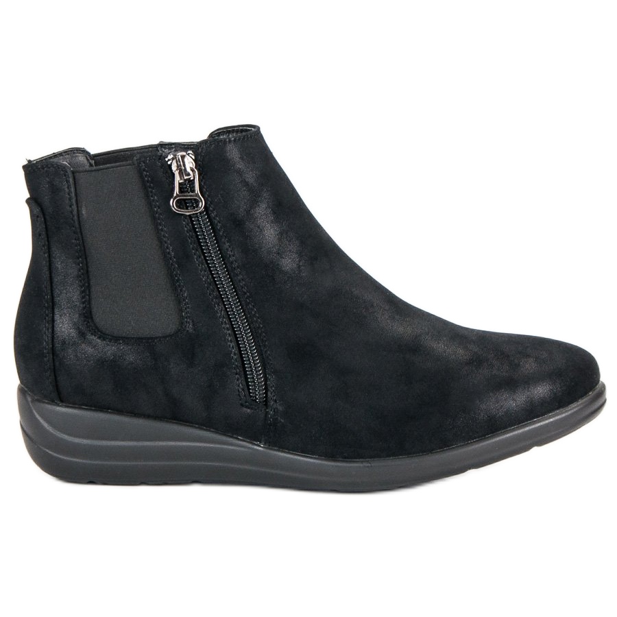 Izrađene od visokokvalitetne ekološke antilop kože, čizme osiguravaju izdržljivost i atraktivan izgled. Unutarnja izolacija čini ih savršenim rješenjem za zimske dane, a mala klinasta platforma visine 4 cm jamči udobno nošenje.