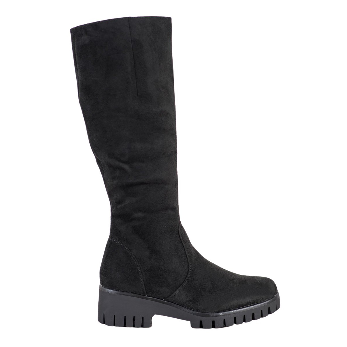 Visoki gornji dio do koljena i zaobljeni vrh naglašavaju njihov klasični kroj. Plastični potplat s gazištem pruža izvrsno prianjanje, a platforma visoka 2 cm i peta od 5 cm dodatno poboljšavaju udobnost korištenja i dodaju stilski izgled.