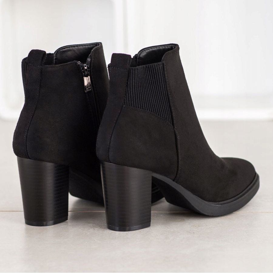 Super Mode crne gležnjače na visoku petu savršen su izbor za žene koje traže elegantnu, a istovremeno udobnu obuću za razne prigode. Izrađene od visokokvalitetne ekološke antilop kože, ove čizme spajaju moderan dizajn s klasičnim elementima, što ih čini savršeno usklađenim s aktualnim trendovima.