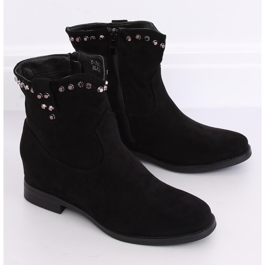 G-7606 Crne skrivene čizme na klin idealan su izbor za žene koje žele spojiti udobnost s modernim stilom. Visoke 6 cm, ove gležnjače ne samo da vizualno izdužuju vaše noge, već osiguravaju i udobnost za svakodnevno nošenje. Obilježen rock stilom, gornjište ukrašeno kamenčićima i nitnama privlači pažnju i dodaje karakter svakom stajlingu.