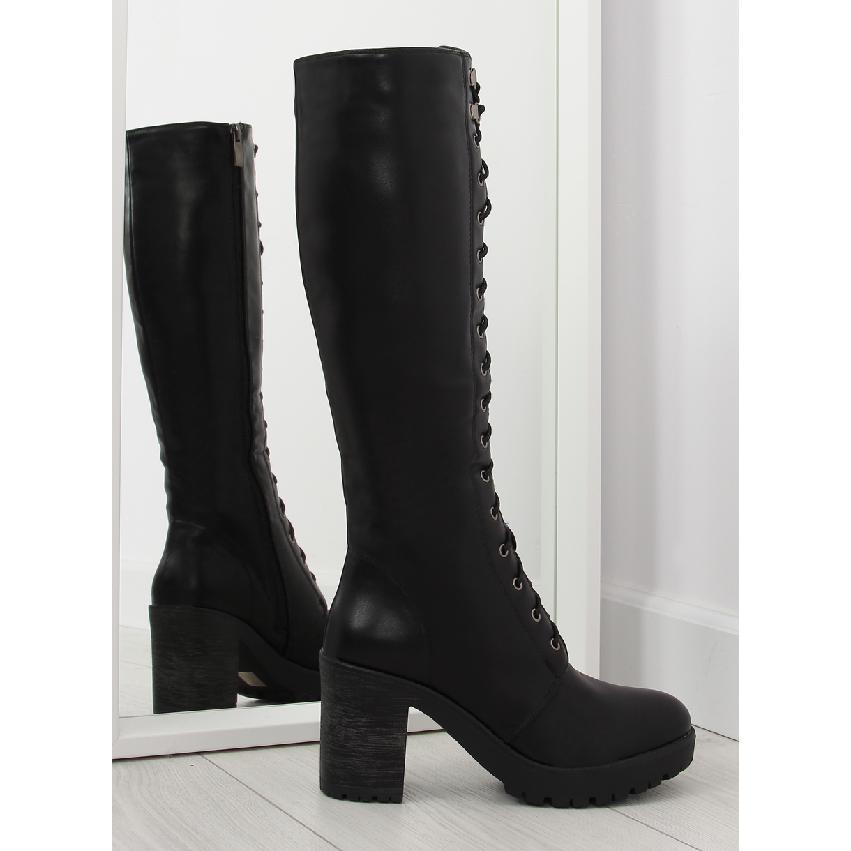 Model je u potpunosti na vezanje i kopča se patentnim zatvaračem, što znatno olakšava obuvanje i izuvanje. Savršeno prianjaju uz nogu pa je njihovo nošenje pravi užitak. Čizme su izrađene od visokokvalitetne, punozrnate eko kože koja ne samo da izgleda impresivno, već je i jednostavna za održavanje. Dodatno, unutarnje krzno daje toplinu, što je iznimno važno u hladnijim danima.