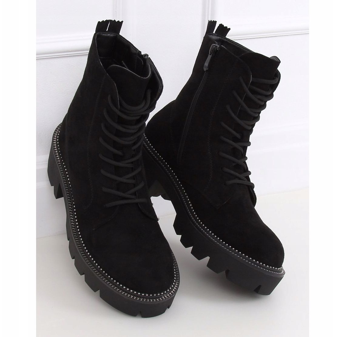 Otkrijte stil i udobnost uz UK13P crne gležnjače s visokim potplatom koje savršeno odgovaraju najnovijim modnim trendovima. Ove ženske radničke čizme na vezanje, bezvremenske crne boje, odlikuju se impresivnim, ukrašenim potplatom visine 2,5 cm i čvrstom petom visine 5,5 cm, koji im daju karakter i stil.