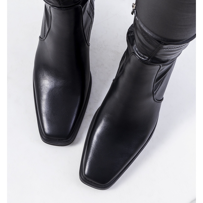 Elegantne, bezvremenske livrame čizme savršen su prijedlog za jesensku/zimsku sezonu. Ekspresivni, kvadratni nos - hit koji se vraća u najnovijim trendovima - u kombinaciji sa stabilnom trakom, stvara učinkovit i ugodan rez. Gornja izrađena od visokokvalitetne ekološke kože izgleda elegantno i lako se prilagođava različitim stilovima.