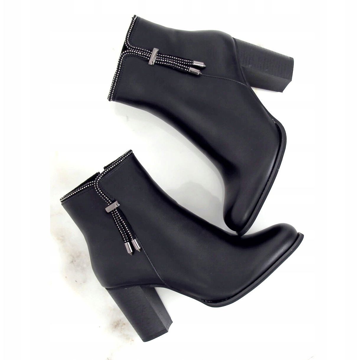 Dodatno, dekorativna aplikacija nježnih cirkona daje modelu jedinstven karakter koji će zasigurno privući pažnju. Glatki kroj u kombinaciji s bademastim vrhom čini čizme ne samo elegantnim, već i iznimno univerzalnim - savršenim za svakodnevnu upotrebu i elegantne prilike.