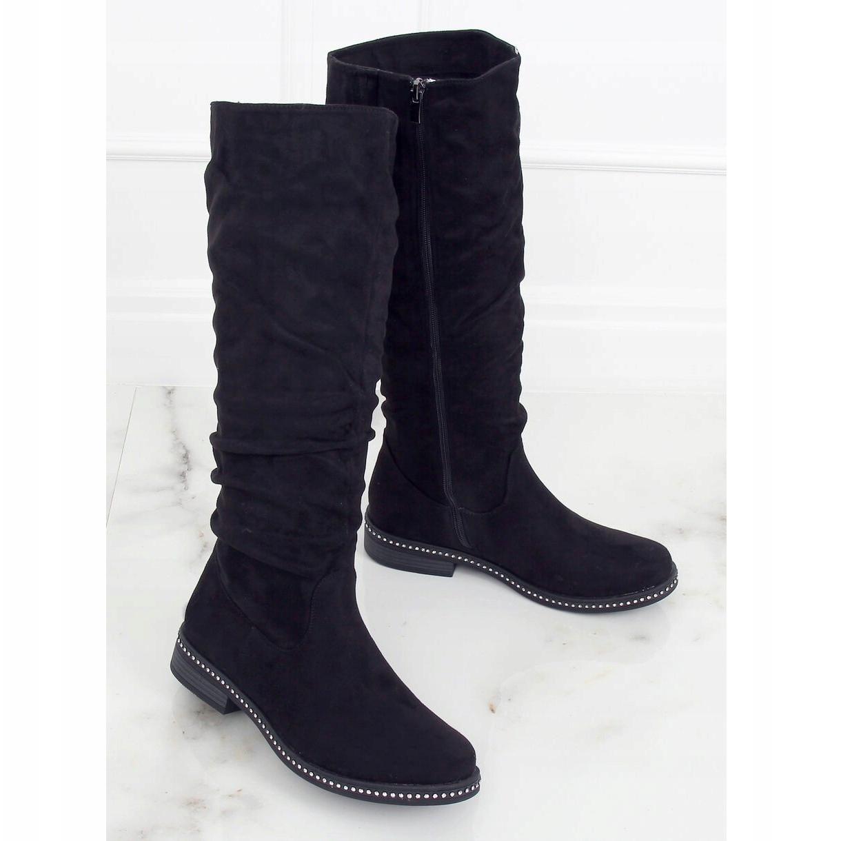 Crne gležnjače od brušene kože klasik su savršene za svakodnevnu upotrebu – savršene uz traperice, tajice i haljine. Gornjište do koljena i ravna peta od 3 cm jamče udobnost nošenja, a okrugli vrh dodaje suptilnost. Dodatno, ukrasni kamenčići u obliku kamenčića čine da ove cipele lako privuku pažnju i obogate svaki stajling.