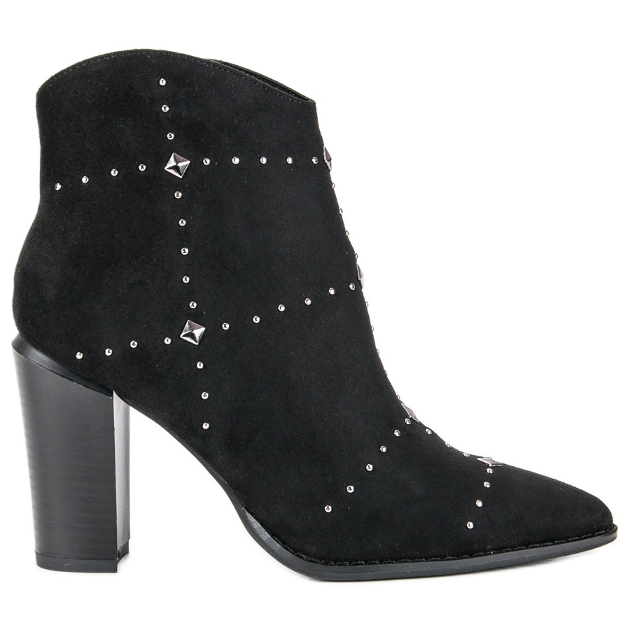 Zahvaljujući visokoj peti u obliku stupića od 9,5 cm ističu figuru i svakom stajlingu daju elegantan izgled. Šiljati vrh i originalni ukrasi sa kamenčićima i nitnama dodaju malo veselja, čineći ove čizme jedinstvenima. Dodatno, patentni zatvarač olakšava obuvanje i izuvanje, a ugrađena peta osigurava stabilnost tijekom nošenja.