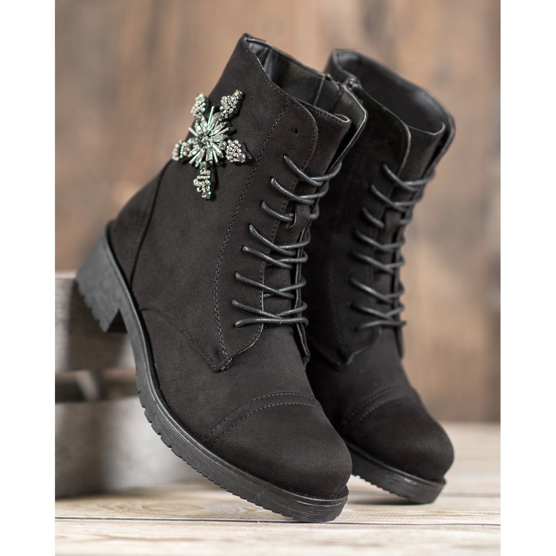 Otkrijte jedinstvenu eleganciju i stil uz SHELOVET gležnjače od crne antilop kože. Izrađene od visokokvalitetnog ekološkog antilopa, ove moderne ženske cipele odličan su izbor za jesenske dane. Njihova čipkasta konstrukcija i originalni ukrasi od šljokica privlače pažnju, dodajući jedinstveni karakter svakom stajlingu.