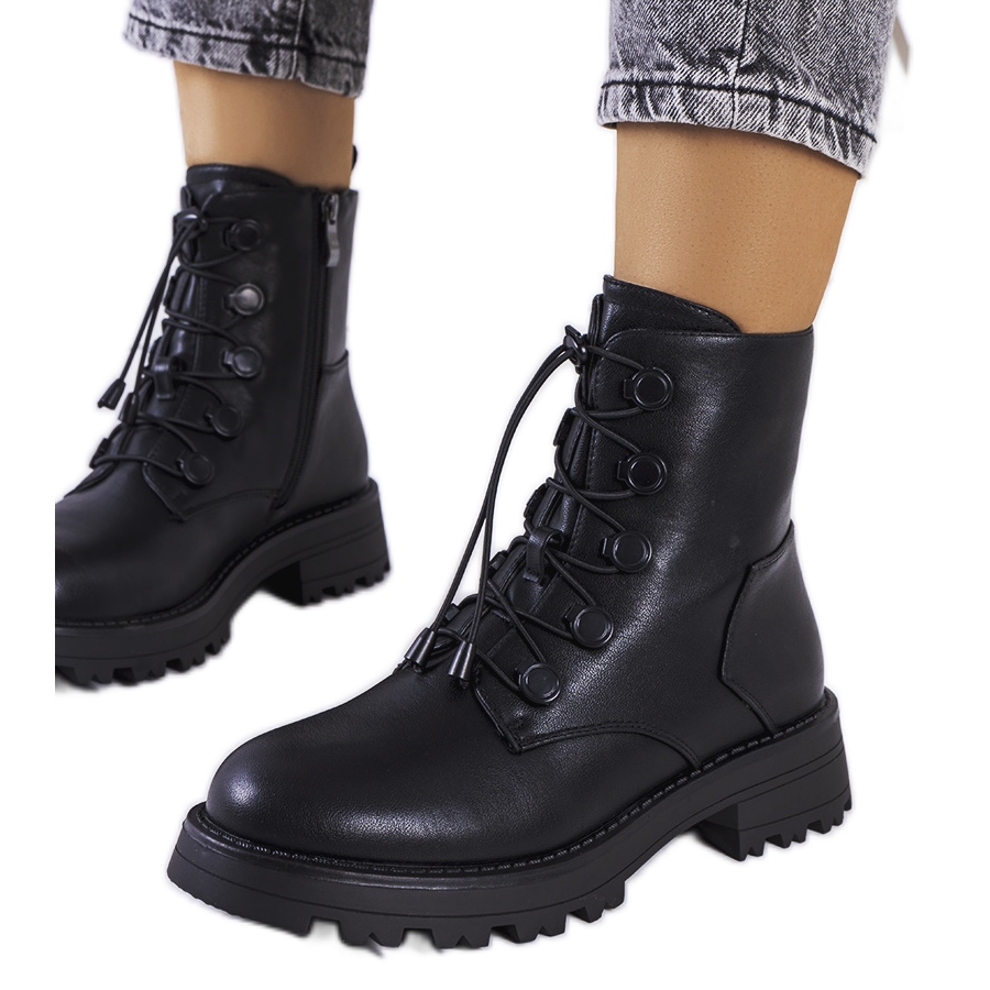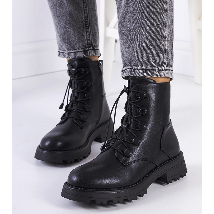 Klasične i modne čizme na debelom zaštitniku - savršene za jesensku/zimsku sezonu. Izrađena od izdržljive ekološke kože, malo izolirana iznutra, s udobnim, okruglim nosom. Zahvaljujući ravnoj platformi s visinom od 4,5 cm i plastičnim potplatima bez klizanja, oni osiguravaju stabilnost i udobnost tijekom svakodnevnog trošenja.