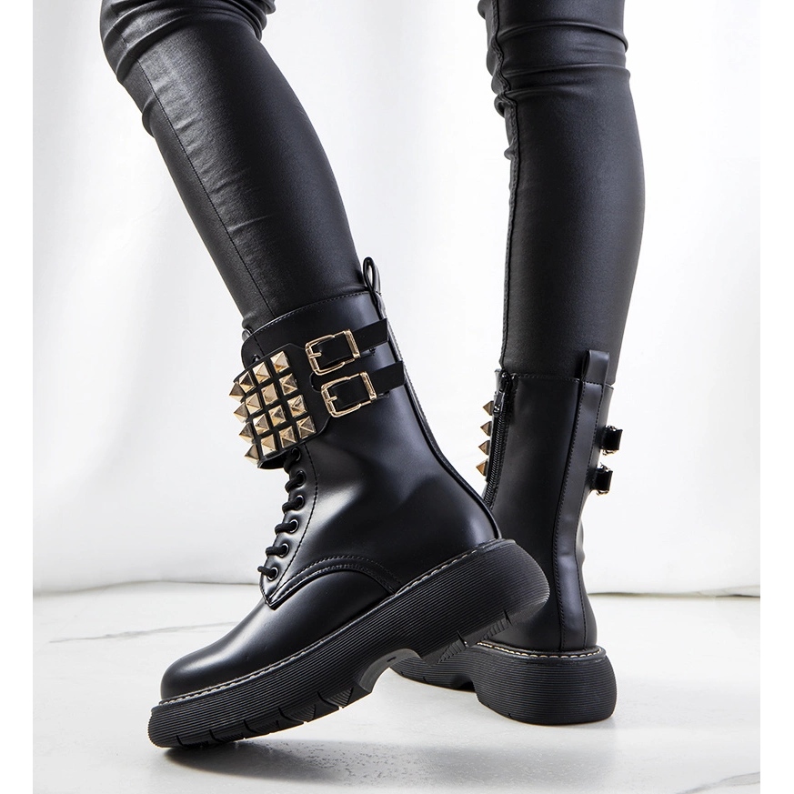 Predstavljamo crne čizme s Lacer nitnama brenda PA1 koje će svakako dodati karakter svakom stajlingu! Ova modna obuća spaja vrhunski dizajn s visokom kvalitetom izrade. Gornjište ukrašeno zlatnim nitnama čini čizme nevjerojatnim i privlačnim. Visok potplat suptilno ističe noge, a ravna peta osigurava udobnost nošenja tijekom cijelog dana.