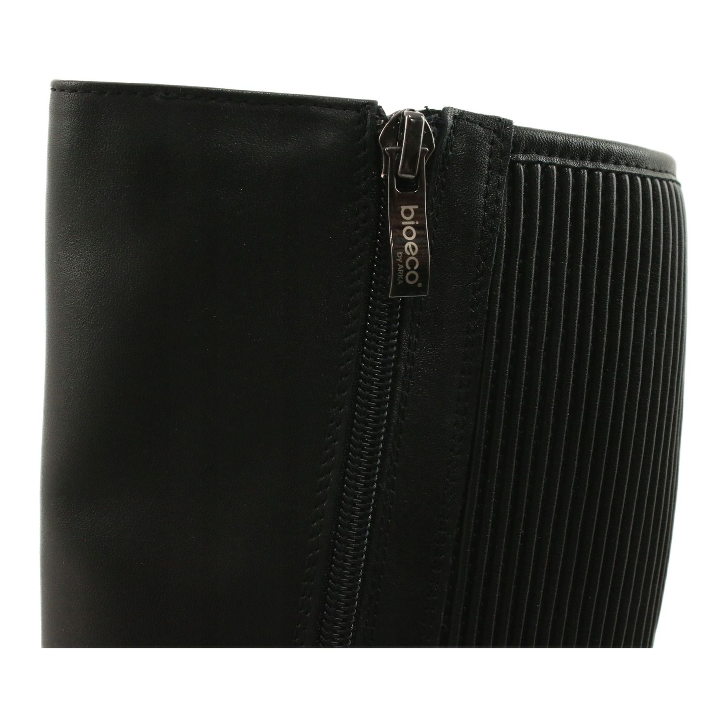 Značajka koja ističe ove čizme je fleksibilan, širok kožni umetak koji se prilagođava širini noge, jamčeći savršeno pristajanje. Gornja visina od cca 40 cm znači da čizme učinkovito pokrivaju potkoljenicu, a niska peta od 3,2 cm osigurava udobnost nošenja tijekom cijelog dana.