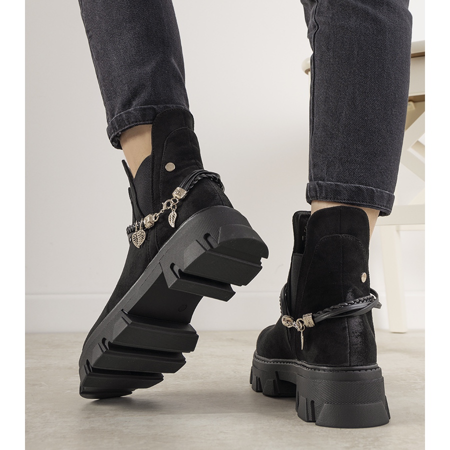Crne čizme s Fearless narukvicom savršen su odabir za nadolazeću jesensko-zimsku sezonu. Ove elegantne cipele, izrađene od visokokvalitetne ekološke antilop kože, spajaju eleganciju i jedinstven karakter. Njihov izlizani efekt na prstima dodaje originalnost, a visoki potplat s uzorkom čini ih privlačnima.