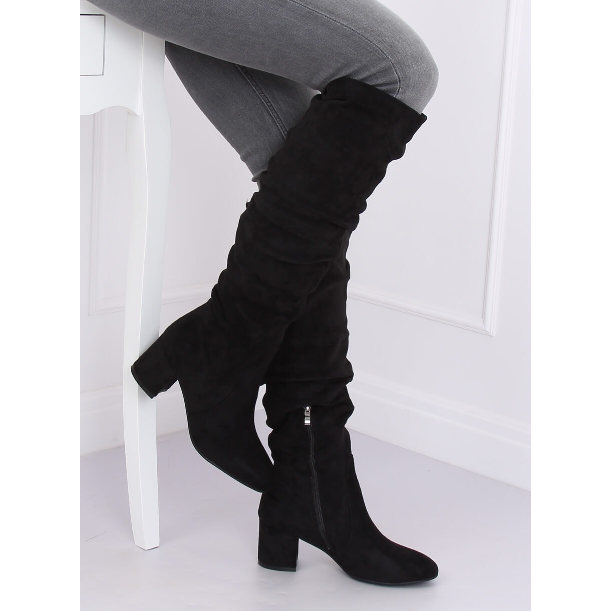Bezvremenske čizme u dubokoj crnoj boji savršeno pristaju uz širok raspon stajlinga, od ležernih, preko poslovnih, do svečanijih prilika. Stabilna potpetica visoka 6 cm jamči udobnost i tijekom dugog dana punog obaveza. Kroj cipela s naboranim gornjištem do koljena dodat će chic svakom outfitu, a okrugli vrh osigurava udobnost i slobodu stopala.