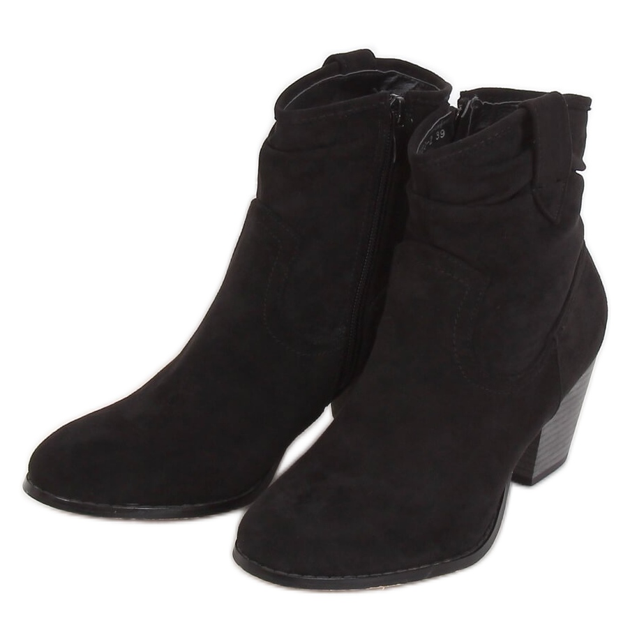 Otkrijte jedinstveni stil uz crne gležnjače na visoku petu 100-986B0-2 Black! Ove ženske gležnjače od brušene kože savršena su kombinacija elegancije i udobnosti, savršene za svaki stajling. Njihov moderan kroj kaubojskih čizama s modernim naboranim gornjištem privlači pažnju i dodaje karakter vašim svakodnevnim kombinacijama.