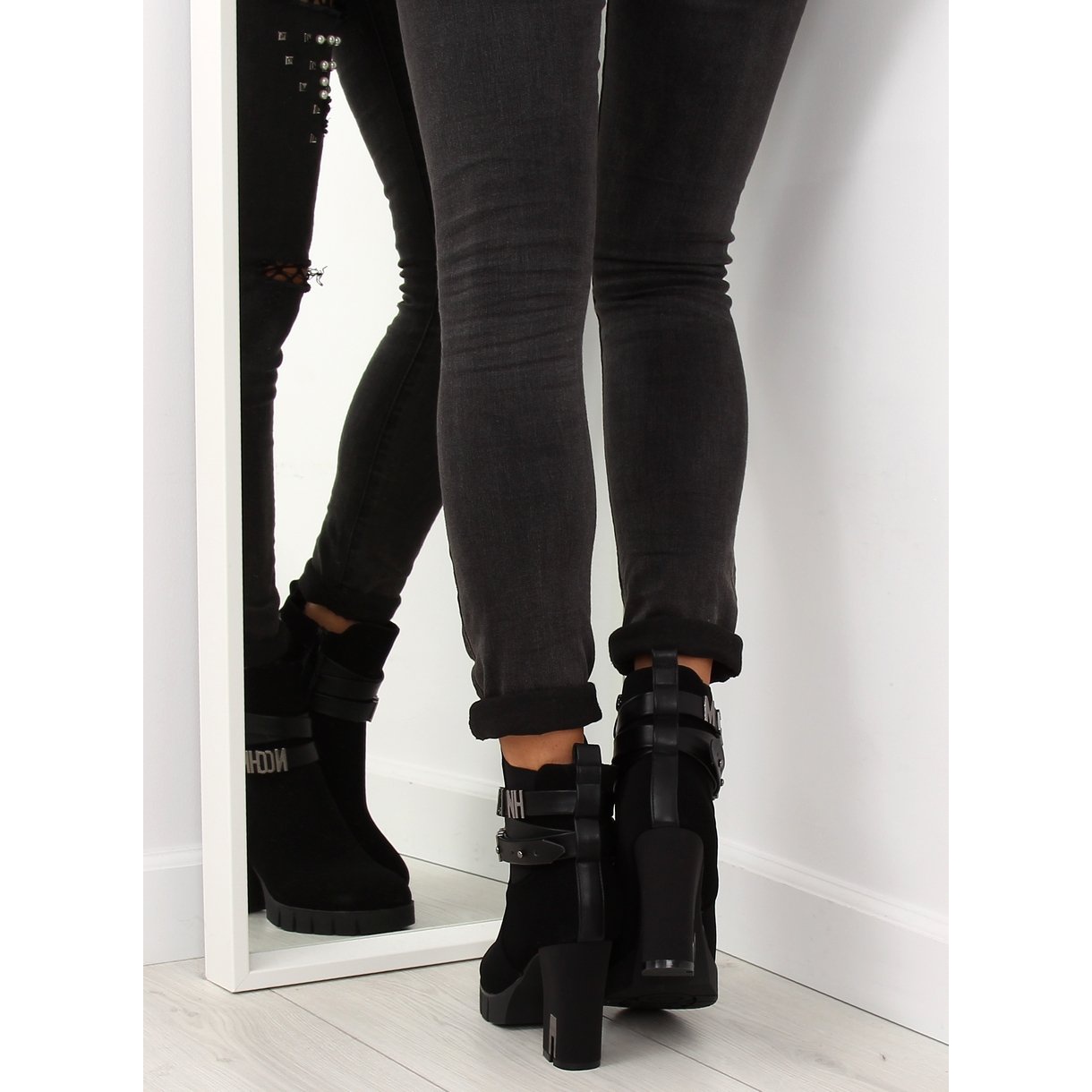 **Crne gležnjače na visoku petu BH114-KB Black**