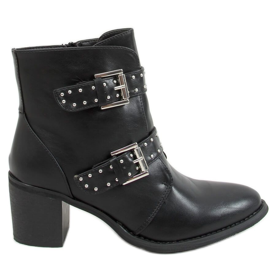 C760 Crne gležnjače na visoku petu s nitnama savršen su izbor za žene koje cijene stil i udobnost. Ove elegantne cipele od punog zrna sa širokom petom od 6,5 cm spajaju rock karakter sa svakodnevnom udobnošću. Crni, glatki završetak u kombinaciji s upečatljivim srebrnim nitnama daje im originalnost, a remenčići s kopčama dodatnu eleganciju.