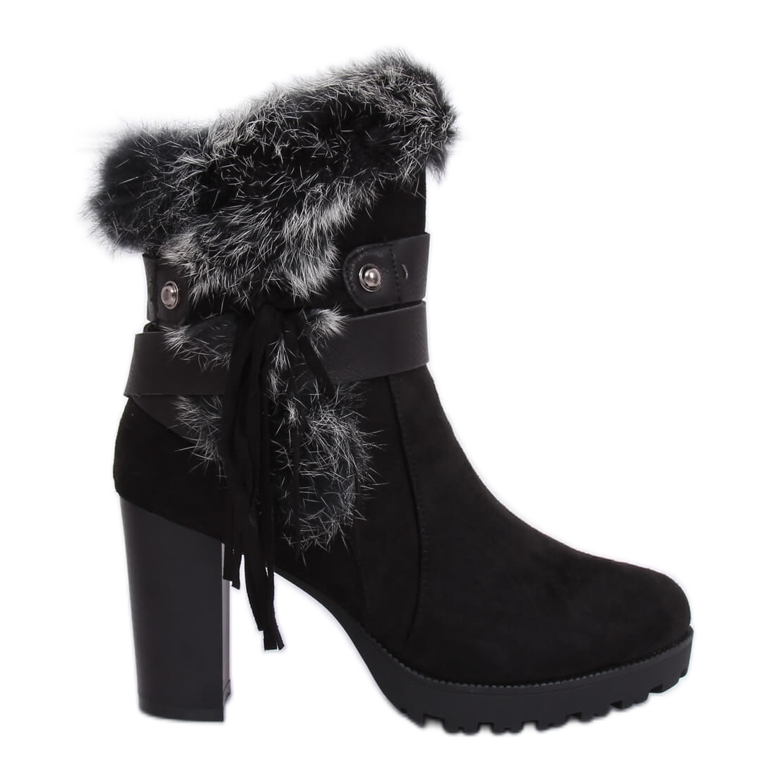 Crne čizme s visokim potpeticama s krznom SP05 Crna