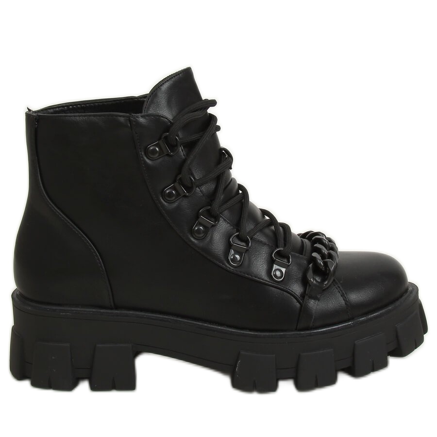 Predstavljamo vam NC1106 crne čizme na vezanje s visokim potplatom koje su savršen spoj modernog dizajna i udobnosti. Ove elegantne čizme, bezvremenske crne boje, zasigurno će privući pažnju mnogih žena. Svoju karakterističnu siluetu duguju visokom potplatu visine 5 cm i upečatljivom lančiću s prednje strane koji daje izražajnost i jedinstven stil.